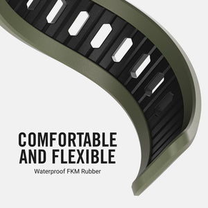 This band has the rugged and technical look I wanted. There is a short break in period where the band is stiff and the fastener holes are tight. After a couple days of wear the band becomes very form fitting and comfortable. I really like this band!