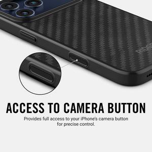 The carbon fiber case looks cool and feels great in the hand. Provides good protection for the camera lens and “plateau”. Fit is very snug, of course, and the buttons on the case feel great. Button response is great and the camera button works flawlessly through the case. The footprint of the case does not add bulkiness to the phone’s footprint. Phone is still very light and thin. After all, that is why I bought the phone. Highly recommend!